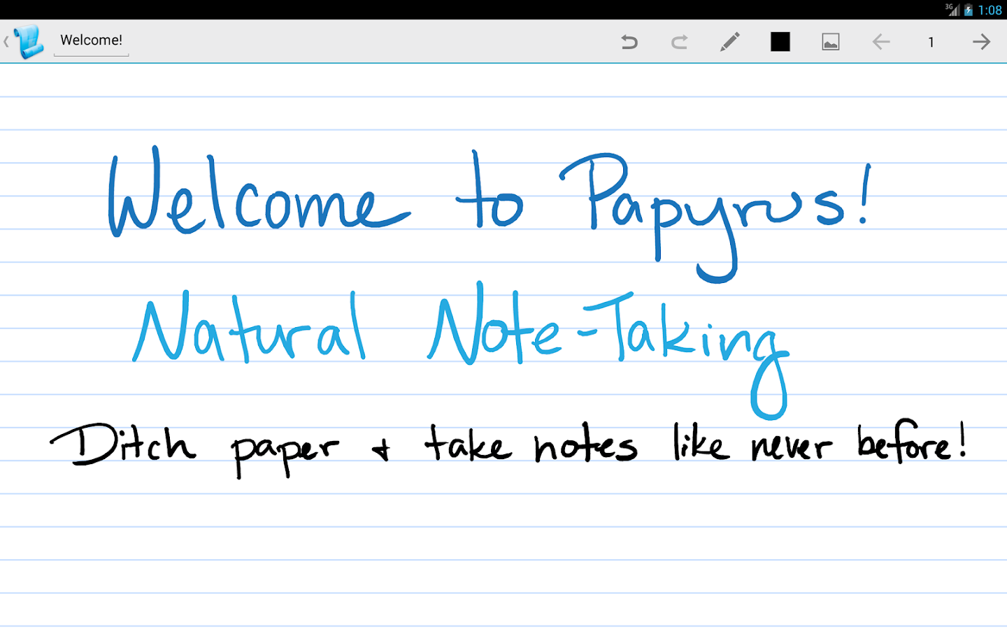 Papyrus is a natural handwriting note-taking app that you use just like paper, but with the flexibility and advantages of modern technology. With Papyrus, you can go beyond paper!Take handwritten notes naturally on your Android tablet or phone! With Papyrus you can write just like you would on paper using an active pen, passive stylus, or your finger. Easily markup PDFs to fill out forms, edit/grade papers, or sign documents. Import images, draw shapes, and add typed text to your notes. Quickly select, copy/paste, and move content between pages and notes. Organize your notes within notebooks and increase your productivity!